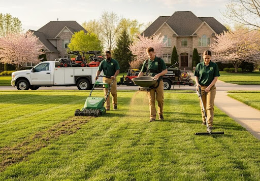 Professional lawn maintenance paired with seasonal cleanup prevents accumulation.